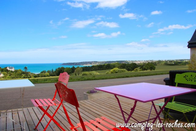 Location de mobil-home, vue sur mer et le cap d'Erquy.