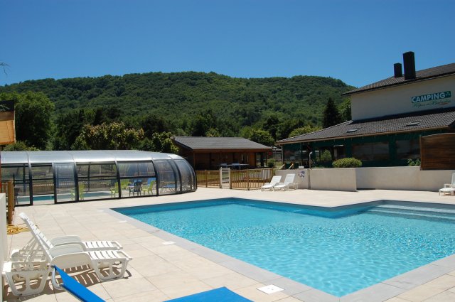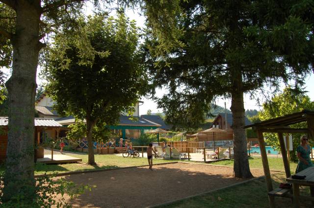 Agréable camping *** en pays d'Auvergne calme et nature, le repos du baladin, situé à 2 km du lac Chambon est un ensemble comprenant un espace locatif de 33 mobile home et chalets, 58 emplacements ombragés et semi-ombragés sur 3 hectares. Sur place, restaurant pizzéria, terrasse couverte avec bar cocktail, 2 piscines chauffées dont une couverte, aires de détente et de jeux, wifi, animations enfants,face au château de Murol.