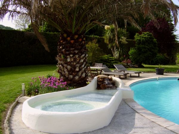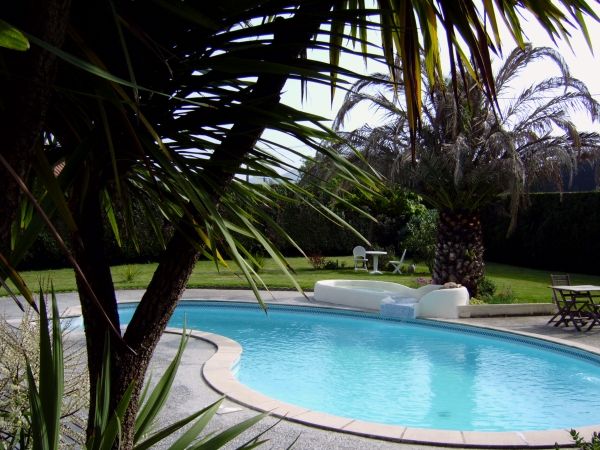 Exposée plein Sud, la terrasse et la piscine en haricot bénéficient d'un ensoleillement exceptionnel du matin jusqu'au soir. La piscine à fond plat, facilite les jeux en toute convivialité, sécurisant ceux qui manquent de confiance ou ne savent pas nager.
