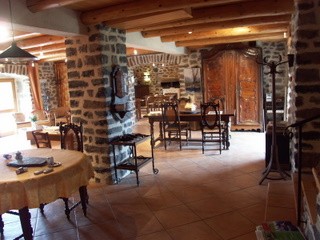 Atmosphère simple et cordiale. De la terrasse orientée plein sud, vue panoramique sur l’ouest et les monts du Velay.