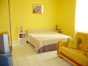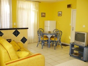 -un coin détente avec un canapé 2 places (faisant lit en 110), une Tv-magnétoscope ( 55cm).
